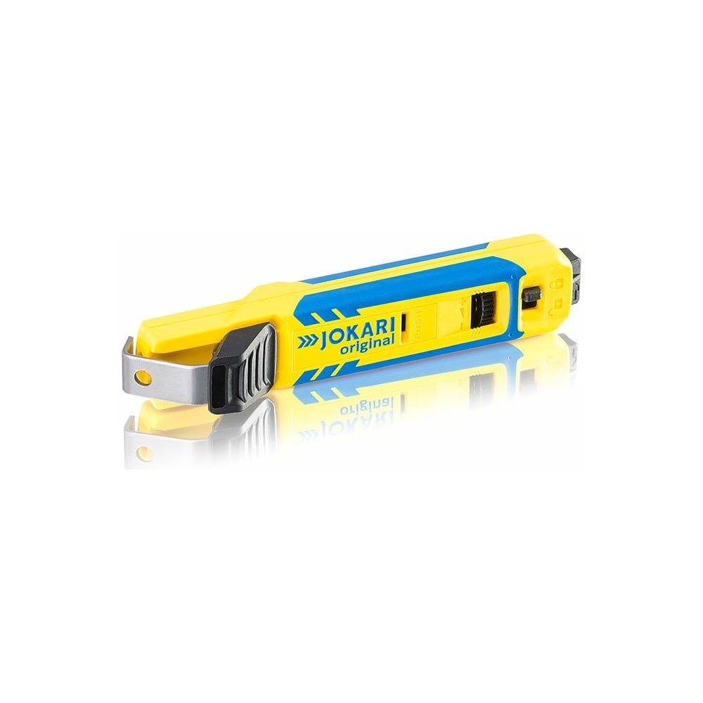 Нож для снятия изоляции с заменой прижимного рычага Jokari 70000 System 4-70 70000 представляет собой систему кабельных ножей. Порезанные травмы остались в прошлом благодаря недавно разработанному механизму защиты Проверено TÜV / GS За процессом резки можно мгновенно наблюдать через уникальное смотровое окошко в металлической скобе Совершенный эргономичный дизайн нового JOKARI обеспечивает удобство использования Благодаря интеллектуальной системе смены кронштейнов (в комплект не входят) все распространенные типы кабелей диаметром от 4 до 70 мм можно зачищать с помощью всего одного инструмента