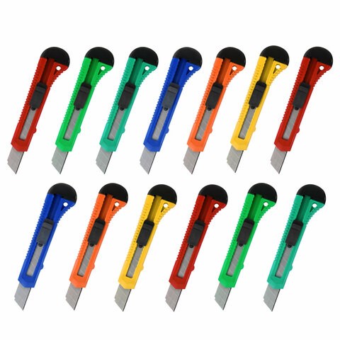 Острые лезвия шириной 18 мм из высокопрочной стали в надежном пластиковом корпусе со специальной защелкой. Защелка позволяет фиксировать лезвие в нужном положение и регулировать длину ножа. Если лезвие затупилось, достаточно выдвинуть часть, пришедшую в негодность, и обломать ее по наклонной черте, нанесенной на поверхности ножа. Имеется отверстие для подвеса.