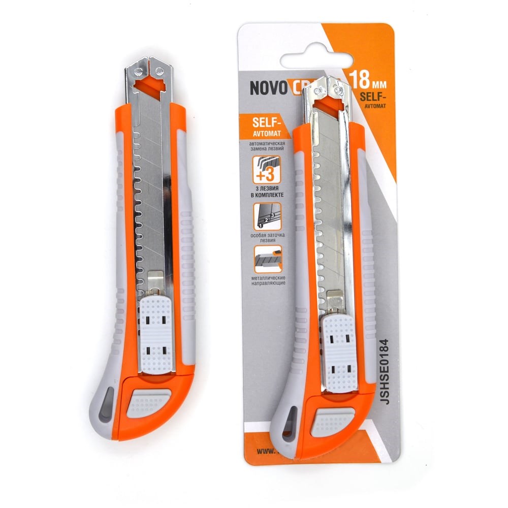 Нож монтажный строительный Акула SELF с автоматической заменой лезвий предназначен для резки таких материалов как: линолеум, картон, бумага, пластик, резина и тому подобное. Особенности данной моделиАвтоматическая замена лезвий Self-Automat3 запасных лезвияудобное расположение в руке за счет двухкомпонентной ручкипрорезиненый противоскользящий корпусметаллические направляющиелезвие с трехгранной заточкойточный резпротивоударный пластиквыдвижное сегментное лезвие 18ммсталь С60