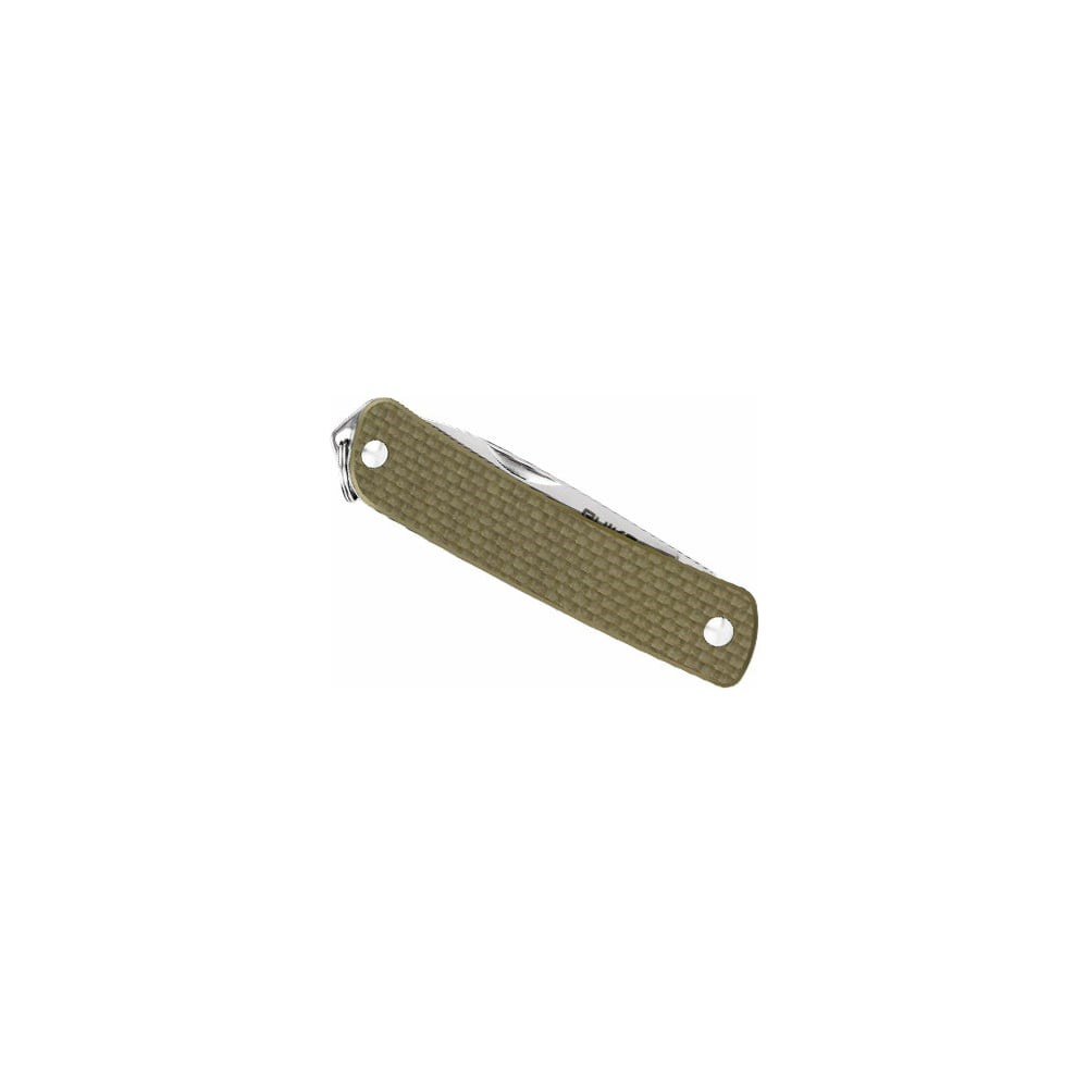 Нож Ruike multi-functional Criterion Collection зеленый S11-G привлекает внимание своими скромными габаритами. Изготовлен из нержавеющей стали, устойчивой к коррозии. На рукоятке предусмотрены специальные противоскользящие накладки. Имеет специальное стальное кольцо для ношения в роли брелка. Дополнительные характеристики Размер лезвия составляет 53 мм Толщина клинка не превышает 2 мм Форма лезвия – популярный вариант Drop point Заточка режущей кромки сделана гладкой Размер сложенного ножа – 71 мм