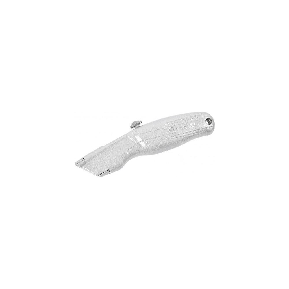 Нож предназначен для резки различных материалов. Специальная конструкция обеспечивает инструменту высокую прочность. Легкая инсталляция лезвия производится без применения дополнительных инструментов. Алюминиевая конструкция корпуса отличается прочностью и надежностью. В комплекте поставляются 3 лезвия.