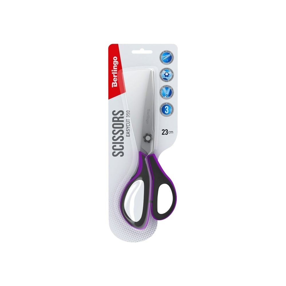 Ножницы Berlingo Easycut 350 23 см, ассорти, эргономичные ручки, мягкие вставки, европодвес DNn_23035 подходят для работы с бумагой и картоном. Размер ножниц 23 см. Лезвия изготовлены из нержавеющей стали. Особая заточка лезвий делает их в три раза острее аналогов. Удобные пластиковые ручки эргономичной формы выполнены с технологией двойного литья, что делает их более прочными и надежными. Дизайн ручек дополнен выемкой под палец и точечным дизайном для более комфортного использования. Новый усовершенствованный соединительный винт. Внимание! Товар поставляется в случайном цвете. Возможности выбора нет.
