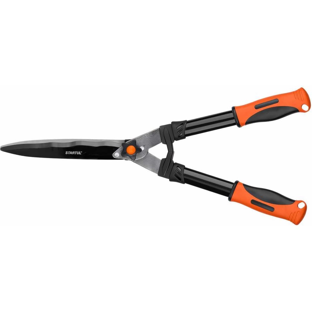 Ножницы для кустов STARTUL Garden ST6096-02 предназначен для формирования кроны деревьев и кустарников. Рукоятки с пластиковым покрытием обеспечивают крепкий хват и удобство работы. Овальная форма придает рукояткам дополнительную прочность на изгиб. Волнообразная поверхность исключает зажевывание при резке тонких веток или одновременном перерезании нескольких веток одновременно. На рукоятках предусмотрены отверстия для компактного хранения инструмента в подвешенном виде.