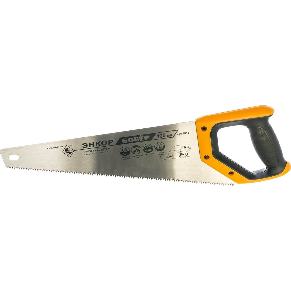 Ножовка с закаленным зубом Энкор Бобер 9851 предназначена для продольного и поперечного распила древесины. Рукоятка частично обрезинена, что защищает от скольжения инструмента в руке. Рабочая часть изготовлена из стали, а зубья закалены, что гарантирует долгий срок службы ножовки.