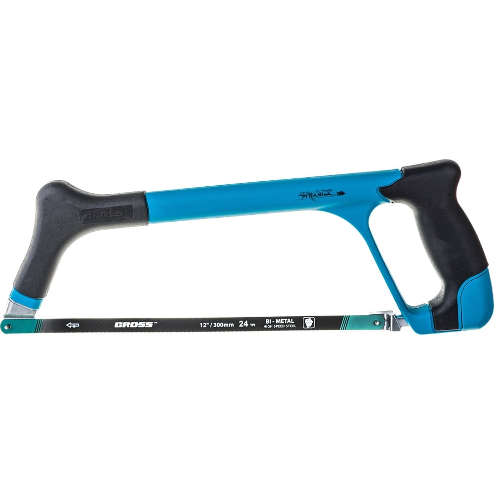 Ножовка по металлу Gross «PIRANHA» 77602, 300 мм, с трехкомпонентной металлопластиковой рамкой, рассчитана на профессиональное использование. Позволяет выполнять не только поперечный, но и продольный рез, т.к. имеется возможность установки полотна под углом 45° и 90°. Благодаря винтовому механизму можно регулировать степень натяжки полотна для повышения точности реза.