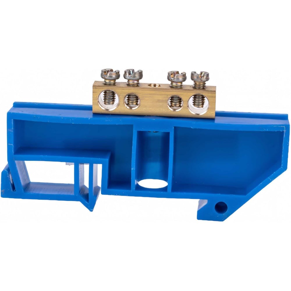 Нулевая N шина с синим изолятором на DIN-рейку REXANT 6x9 мм стойка большая 4 группы 11-2338 предназначена для электрического и механического соединения нулевых, защитных и фазных проводников. Выполнена из латунной шины, установленной на пластиковый изолятор, изготовленный из самозатухающего пластика. Номинальное напряжение: 450 В. Максимальное поперечное сечение проводника: 16 мм2. Температура эксплуатации: -40...+50 °C. Среднее значение относительной влажности эксплуатации не более 90%.