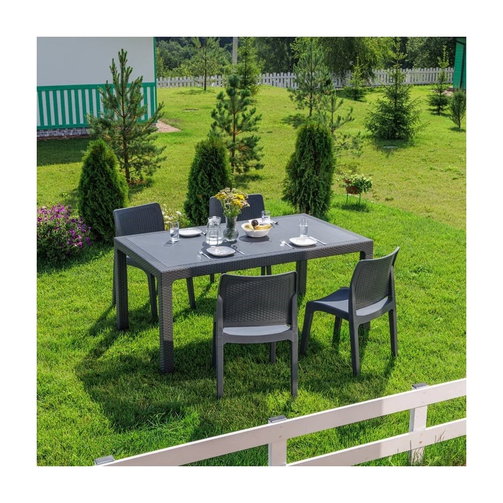 Комплектация и габариты:Обеденный стол - 165х94,5х74,5 смСтулья (4 шт.) - 49х52х84 смШирина посадочного места - 40 смГлубина посадочного места - 43 смВысота от пола до сидячего места - 49 смМатериалы:Материал комплекта - окрашенный в массе полипропилен с повышенной прочностьюЦвет комплекта - графитДополнительная информация:Количество посадочных мест – 4 человекМаксимальная нагрузка на посадочное место - 120 кгМожно штабелировать стулья - даПоставляется в разобранном видеТемпературный режим - от -50C до +50C