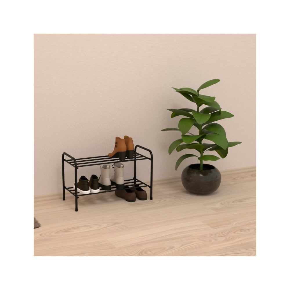 Обувница-этажерка для обуви ЗМИ Альфа 22 2 полки 6 пар обуви цвет черный ПДОА22 Ч предназначена для хранения обуви.Вмещает несколько пар обуви, поэтому отличается практичностью.Современный дизайн обувницы впишется в любой интерьер.Благодаря устойчивой конструкции исключено случайное опрокидывание.