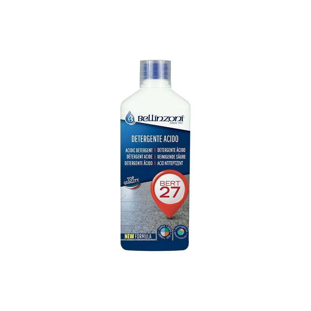 Очиститель Bellinzoni Bert-27 кислота 1 л 004200001 подходит для гранита и керамики. Эффективно удаляет сильные загрязнения, в том числе ржавчину и следы селитры. Обладает антисмольными характеристиками (против дыма и копоти).