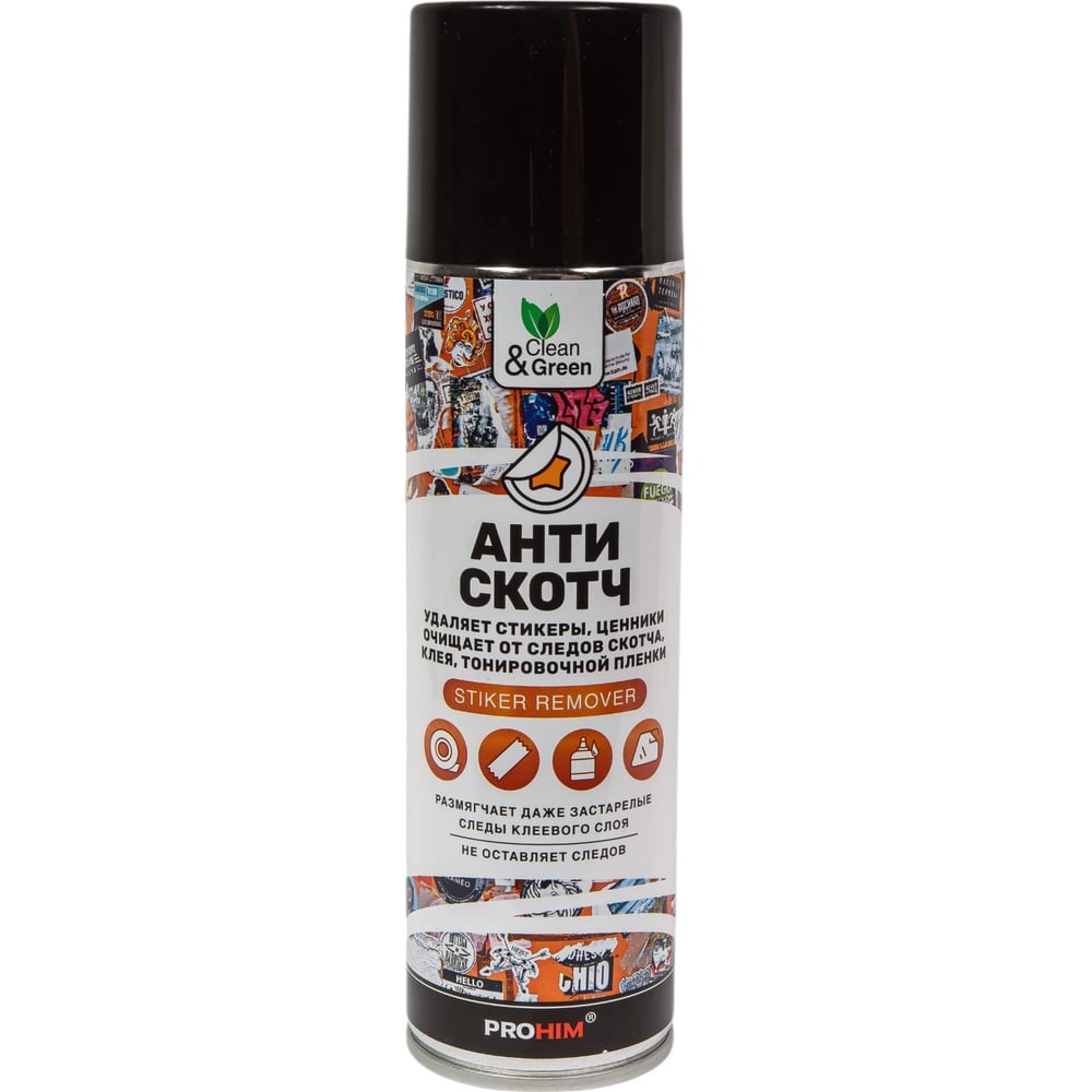 Высокоэффективное средство предназначено для быстрого и безопасного удаления наклеек, самоклеящихся этикеток, липких лент, остатков скотча, тонировочной пленки, жевательной резинки, каучука, дёгтя. Устраняет следы от перманентных маркеров и фломастеров. Применяется на поверхностях: стеклянных, металлических, керамических, фарфоровых, алюминиевых, деревянных. Проникает под поверхность наклейки и растворяет клей. Не вызывает коррозию. Подходит для наружных и внутренних работ, а также для использования в быту. Обладает приятным цитрусовым ароматом. Способ применения: ВАЖНО! Перед обработкой поверхности рекомендуется опробовать действие состава и стойкость к нему на небольшом малозаметном участке, особенно на пластиковых, ламинированных и окрашенных поверхностях. Не применять на латексе и прорезиненных поверхностях. Не наносить на горячие поверхности. Перед использованием энергично встряхните баллон. Во избежание попадания следов аэрозоля защитите поверхности, не подвергающиеся обработке. Равномерно распылите состав с расстояния 5-10 см на наклейку, стикер или следы клея. Дать составу подействовать в течение 1-2 минут и, не дожидаясь высыхания, аккуратно удалить наклейку, остатки клея протереть салфеткой до высыхания. При необходимости можно провести обработку еще раз. Некоторые этикетки имеют плотный верхний слой, ламинацию или лак, который препятствует проникновению средства. В таком случае необходимо отделить поверхностный слой. Оптимальная температура применения от +10°С до +25°С.