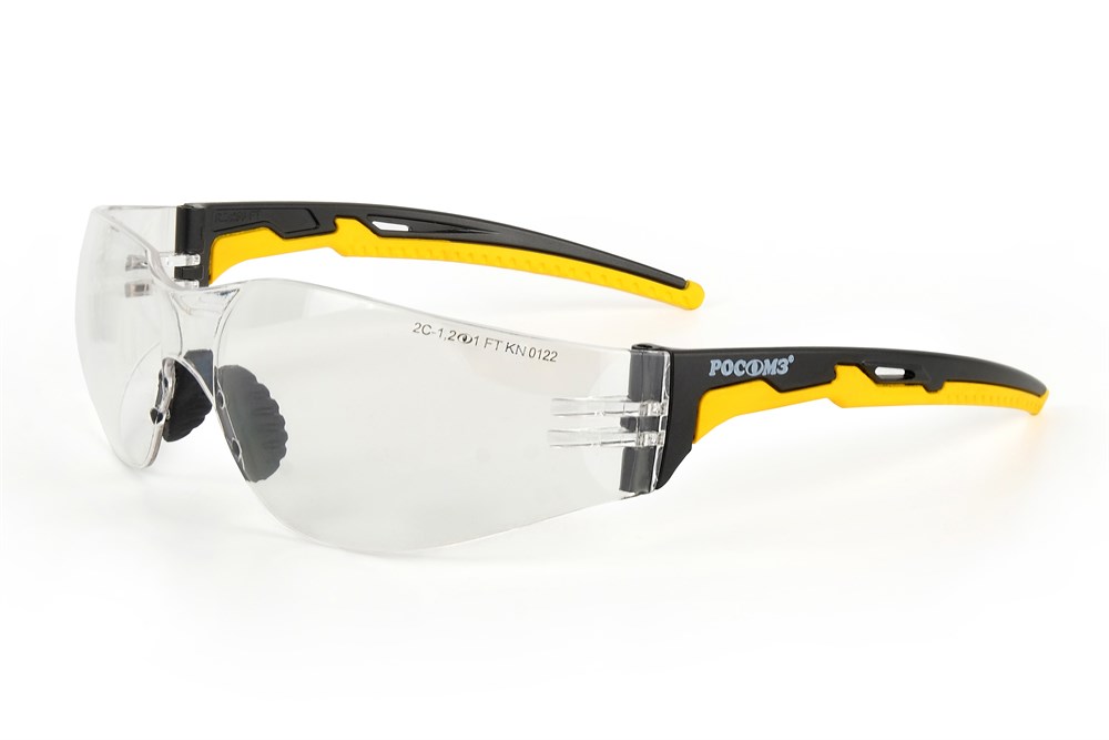 ОЧКИ: - современные легкие универсальные очки с увеличенным панорамным обзором - защитное стекло из прозрачного бесцветного поликарбоната с водостойким двусторонним твердым и незапотевающим покрытием, не теряющим свои свойства при продолжительном использовании - устойчивы к химическим веществам, растворам кислот и щелочей - широкие заушники обеспечивают надежную боковую защиту от твердых частиц - мягкий и гибкий носоупор обеспечивают плотное прилегание в течение всего рабочего дня