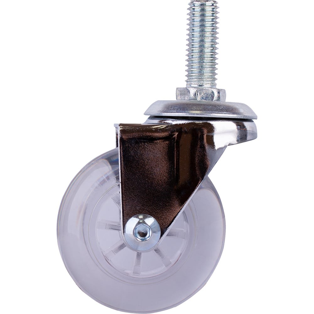 Одинарный ролик Стройбат с резьбовым штифтом М10 50 мм полиуретан/пластик прозрачный 1 шт 555980 представляет собой колесо, на которое устанавливается основание. Обеспечивает мобильность изделия, поэтому отличается практичностью. Простой монтаж ролика экономит время и силы. Благодаря высокой прочности прослужит долго.