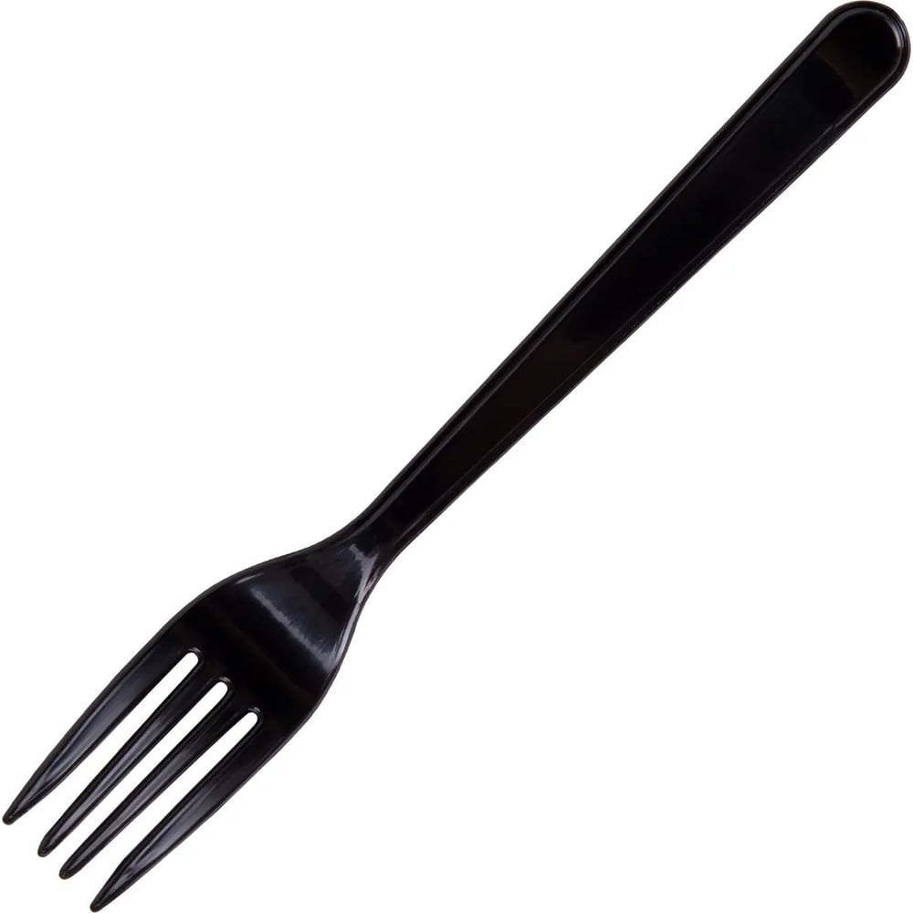 Одноразовые пластиковые вилки Белый аист 180мм, 50шт, эталон, черные 607838 подходят как для холодных, так и для горячих (до +70градусов) блюд. Используются на предприятиях общественного питания, в дороге, на пикнике, а также дома и в офисе. Приборы изготовлены из высококачественного пищевого полистирола черного цвета, поэтому они легкие и безопасные в использовании.