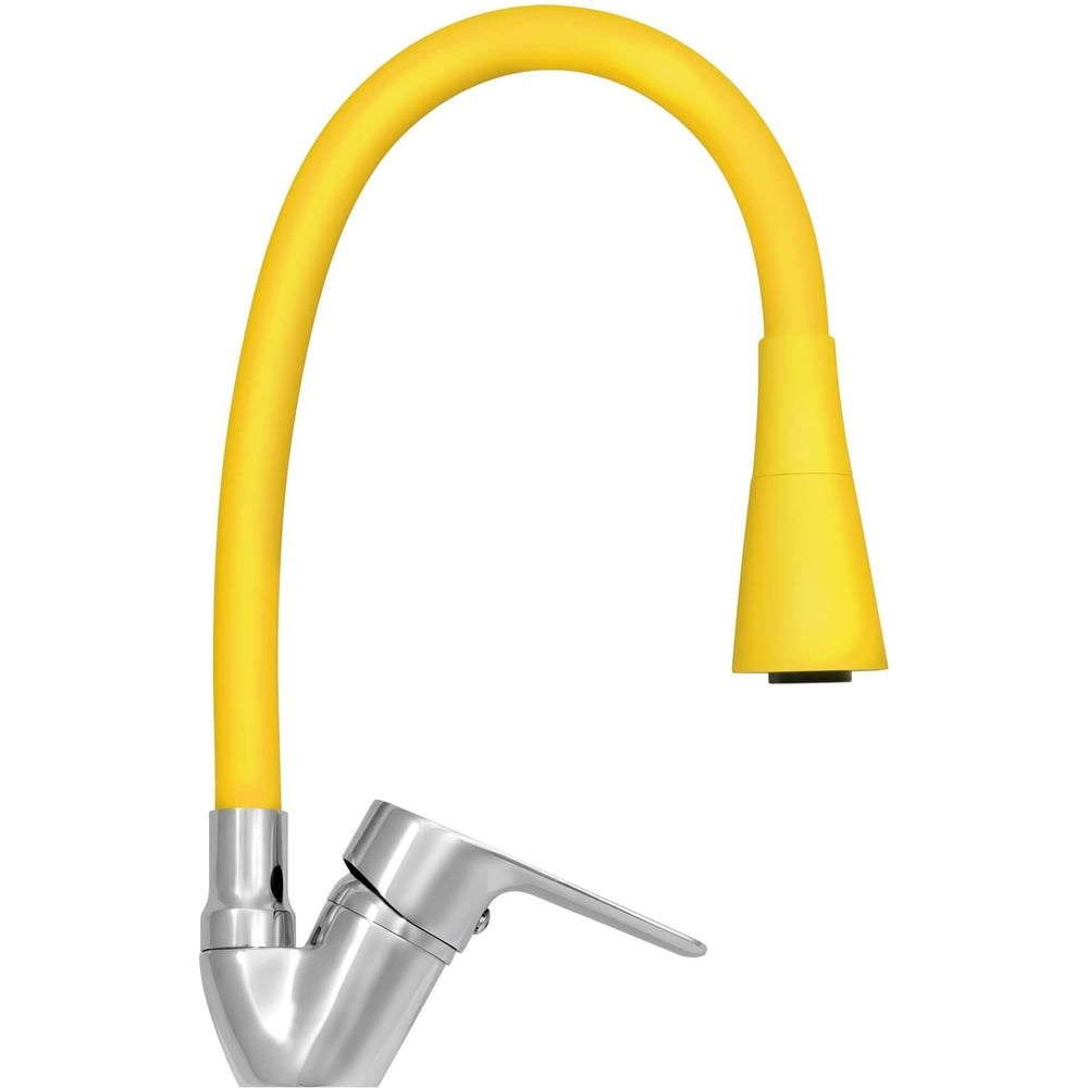 Смеситель для кухни Juguni желтый серии Hydra, 0402.150 Кухонный смеситель (кран) предназначен для использования в городских квартирах или частных домах, имеет современный дизайн и изготовлен из материалов и комплектующих, отвечающих современным стандартам качества. Данная модель представляет собой надежный и современный смеситель с горизонтальным способом установки, устанавливается на мойку, раковину или столешницу. Тип крепления – гайка. Смеситель имеет гибкий силиконовый излив (гусак) желтого цвета с двумя режимами, что создает удобство при мытье посуды и овощей, эко-сеточка аэратора выполнена из долговечного ABS-пластика, насыщает воду кислородом, позволяет уменьшить ее расход и предотвращает от разбрызгивания. Корпус смесителя выполнен из прочного сплава алюминия с кремнием с хромированным покрытием. Регулировать температуру воды и выбирать оптимальный напор струи удобно посредством ручки - рычага. Запорный механизм смесителя - керамический картридж 35 мм в корпусе из экологичного АВС-пластика, который не выделяет вредных веществ под воздействием высоких температур. Гарантия от производителя на корпус смесителя 5 лет, на комплектующие 1 год. В комплекте имеется тестовая подводка, для проверки работы смесителя. Гарантия на подводку не распространяется! При установке рекомендуем заменить подводку. Условия ухода за смесителем, для длительной службы всех деталей, описаны в паспорте, вложенном в упаковку.