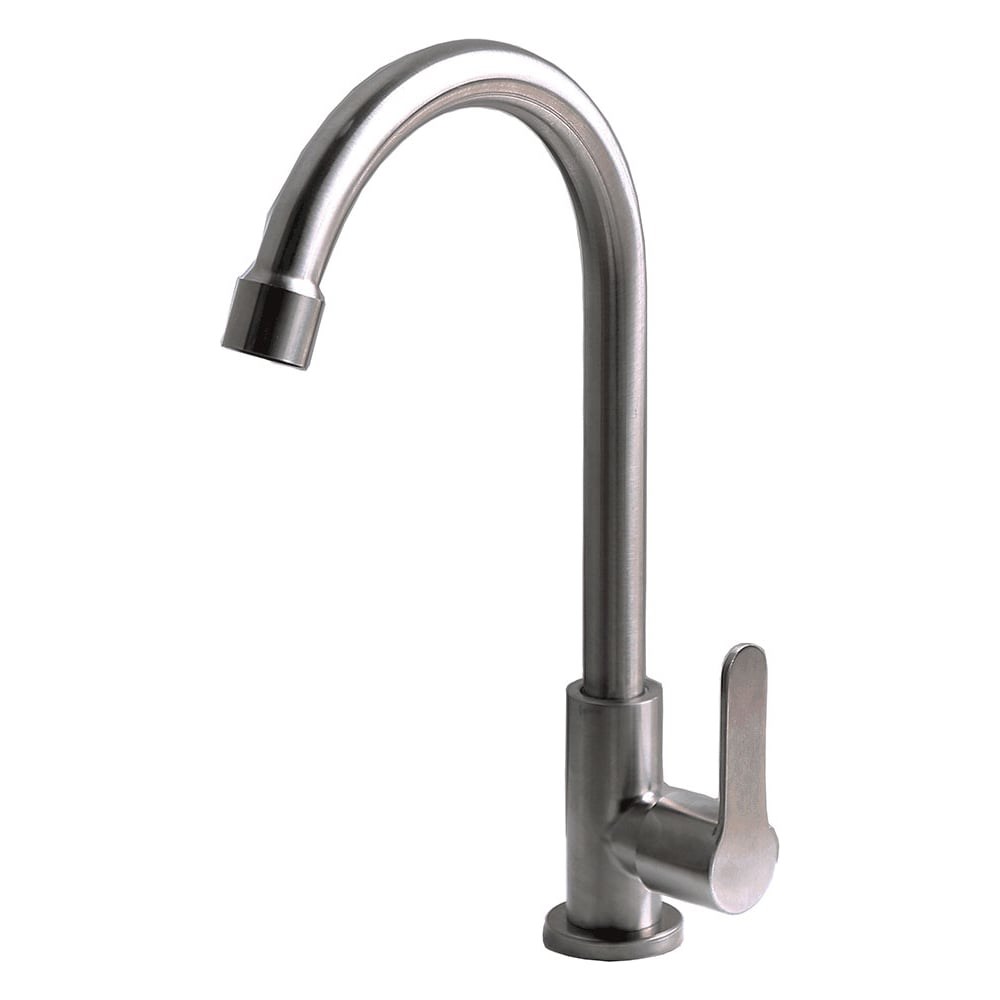 Моно кран с аэратором предназначен для использования с фильтром питьевой воды. Высота корпуса — 286 мм, высота излива — 218 мм. Изделие выполнено из прочной и устойчивой к коррозии стали SUS304 с сатиновой отделкой. Керамическая кранбукса обеспечивает долговечность работы, гибкая подводка не предусмотрена, в комплекте крепёж — гайка.