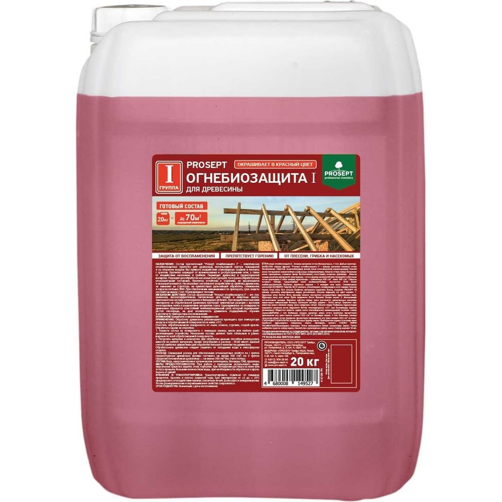 Огнебиозащита для древесины PROSEPT I группа, красный, готовый состав, 20 кг 063-20 И - комплексная огнебиозащитная пропитка для древесины, используемой внутри помещений и на воздухе без прямого воздействия атмосферных осадков и контакта с грунтом. Состав защищает от возникновения и распространения огня, а также от воздействия насекомых и грибков. Переводит древесину в трудногорючий материал.Продукт наносят как на новые конструкции, так и на поверхности, ранее обработанные огнезащитными составами. Пропитка устойчива к старению, не высаливается и не выщелачивается. Не оказывает негативного воздействия на свойства древесины, не изменяет ее структуру, не препятствует дальнейшей обработке, склеиванию и окраске любыми ЛКМ.При обеспечении невымываемости препарата, срок защиты составит не менее 7 лет.Суммарный расход для обеспечения огнезащитных свойств по I группе (трудногорючая древесина) должен составить не менее 500 г/кв. м; по II группе (трудновоспламеняемая древесина) не менее 300 г/кв. м без учета потерь. При воздействии высоких температур на обработанной древесине протекает химическая реакция с высоким поглощением тепла и выделением негорючих газов. Одновременно на поверхности древесины образуется огнестойкий теплоизоляционный слой, который перекрывает доступ кислорода, не дает возможность древесине поддерживать горение и достигнуть температуры воспламенения.Обработку древесины рекомендуется проводить при температуре воздуха и обрабатываемой поверхности не ниже +5°С.