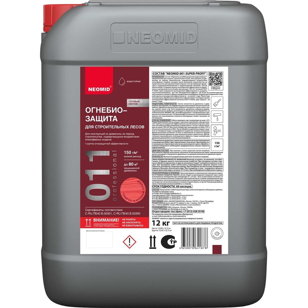 Огнебиозащита для строительных лесов NEOMID Неомид (12 кг) Н-Огн.Труд.-12/гот. предназначена для защиты строительных лесов, конструкций из древесины на период строительства, подвергающихся воздействию атмосферных осадков, которые после окончания строительства не предназначены для декоративной отделки.