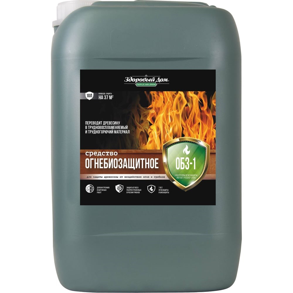 Огнебиозащитное средство Здоровый дом ОБЗ-1 10 л ЛА-00000228 - это эффективное средство для комплексной защиты древесины и материалов на ее основе от возгорания, распространения пламени и биоразрушения. В соответствие с требованиями НПБ 251-98 обеспечивает получение I и II группы огнезащитной эффективности. Продукт предотвращает рост и обеспечивает профилактическую защиту от появления грибков плесени, синевы, гнили. Обладает отпугивающим действием против насекомых-вредителей. Расход (без учета потерь): 600 г/кв. м для обеспечения I (наивысшей) группы огнезащитной эффективности или 300 г/кв. м для обеспечения II (средней) группы огнезащитной эффективности, а также 300 г/кв. м для обеспечения биозащитных свойств. Нанесение в несколько приемов, обеспечивающих нормируемый расход состава.