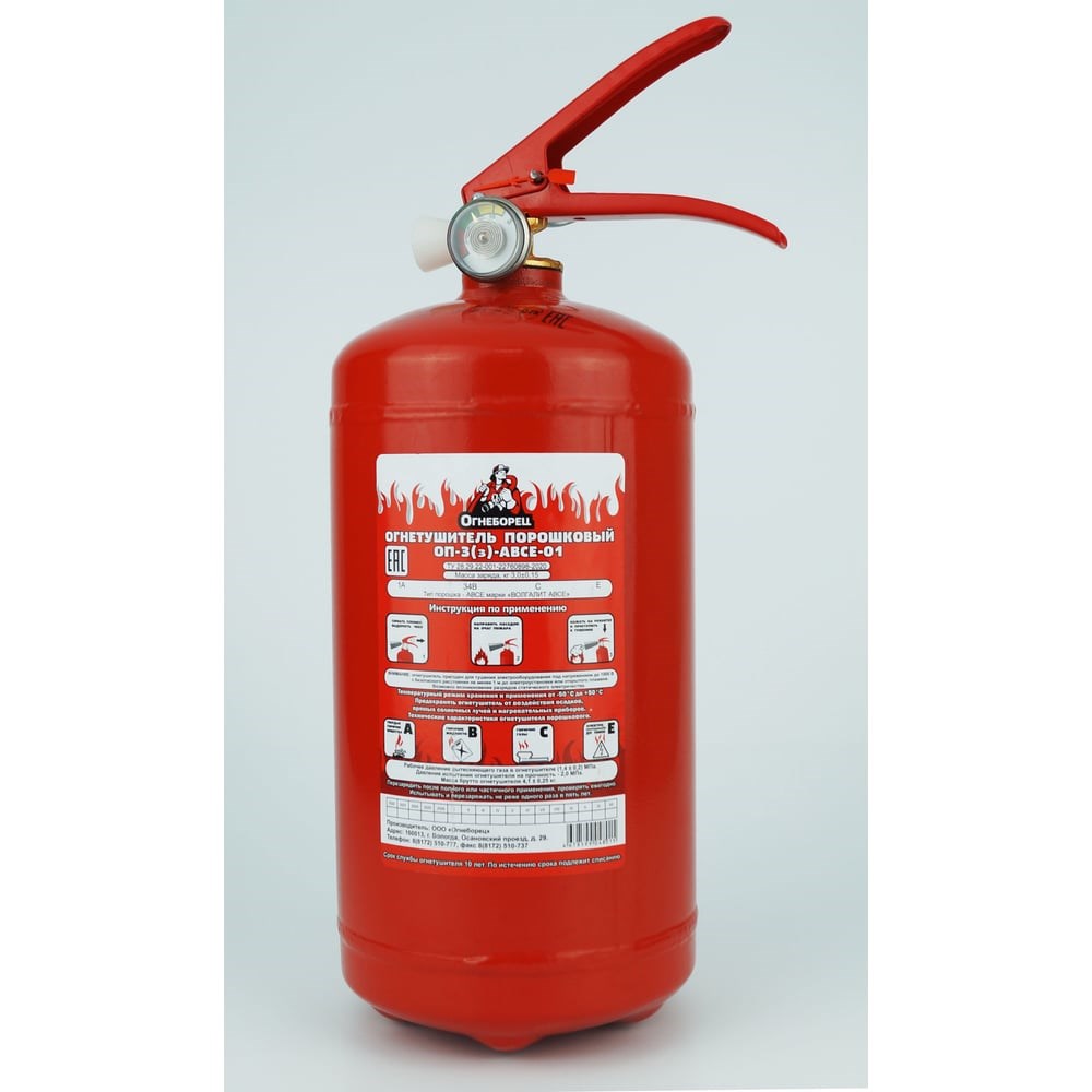 Наша компания «Огнеборец» - одна из крупнейших производителей и поставщиков противопожарного оборудования. Продукция и материалы имеют соответствующие сертификаты. Предлагаем Вам огнетушитель ОП-3 АВСЕ 2024 года выпуска, который служит первичным средством пожаротушения. Это надежный способ обезопасить себя и окружающих. Порошковый огнетушитель позволит Вам ликвидировать обнаруженный очаг возгорания частично или полностью до приезда пожарной охраны. С его помощью Вы сможете потушить твердые (А), жидкие (В) и газообразные (С) горючие вещества, а также электроустановки под напряжением до 1000 V (Е). Чтобы минимизировать риск пожара, важно приобрести огнетушитель. Этот переносной инструмент компактный и сподручный. Он легко поместится в багажнике Вашего автомобиля, всегда будет готов к использованию в случае необходимости. Такое средство пожаротушения может быть использовано не только в авто, но и на железнодорожном, речном транспорте и в бытовых условиях, в доме, в общественных и административных помещениях. Защитит от возгорания цех, склад, парковку или гараж. Огнетушащий баллон оснащен манометром для отслеживания уровня давления. После применения его нужно перезарядить. Срок службы 10 лет, а перезаряжать необходимо каждые пять лет. Иметь ОП-3 в зоне доступа — значит быть готовым к быстрому и эффективному реагированию в случае возникновения возгорания. Убедитесь, что поблизости всегда есть порошковый огнетушитель и Вы знаете, как им пользоваться.