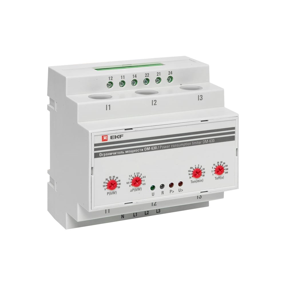 Дополнительные характеристики ограничителя мощности EKF 3-фазный ОМ-630 PROxima rel-pl-630: Тип электрического подключения - зажимное/винтовое крепление. Задержка повторного включения нагрузки (Ton), с - от 2 до 3600. Задержка отключения при перегрузке по мощности (Toff), с - от 1 до 240.