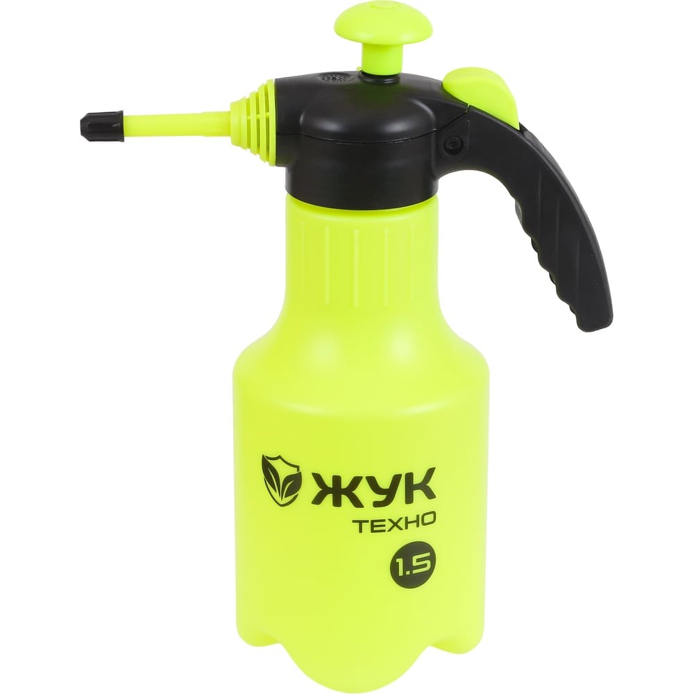Ручной помповый опрыскиватель Жук Техно - легкий и удобный инструмент, устойчивый к кислотным моющим средствам. Предназначен для уборки и санитарной обработки поверхностей. Подходит для дезинфекции, обезжиривания, очистки поверхностей от масла и грязи. Используется для Очистки алюминия и благородной стали Удаления котельного камня со стеклянных и керамических поверхностей Очистки оборудования на автоматический мойках Удаления остатков цемента во время ремонтно-строительных работ Чистки кислото- и водостойких предметов и поверхностей в бассейнах, душевых и туалетах Послестроительной уборки гранитных, кварцитовых, клинкерных и керамических полов Очистки конденсаторов холодильного оборудования Очистки пищевой тары и посуды в молочной промышленности. Опрыскиватель может работать в любом положении благодаря мягкой водозаборной трубке. Регулировка распыления от струи до тумана даёт возможность использовать опрыскиватель для разных задач. Удлиненный носик опрыскивателя позволяет обрабатывать труднодоступные места и увеличивает угол распыла до 120 градусов. Распылитель для кислот 1,5 литра объемом имеет компактный размер, малый вес и удобную ручку, поэтому его легко переносить в руках и удерживать во время работы. Ножки, предусмотренные дизайном бака, придают ему устойчивость.