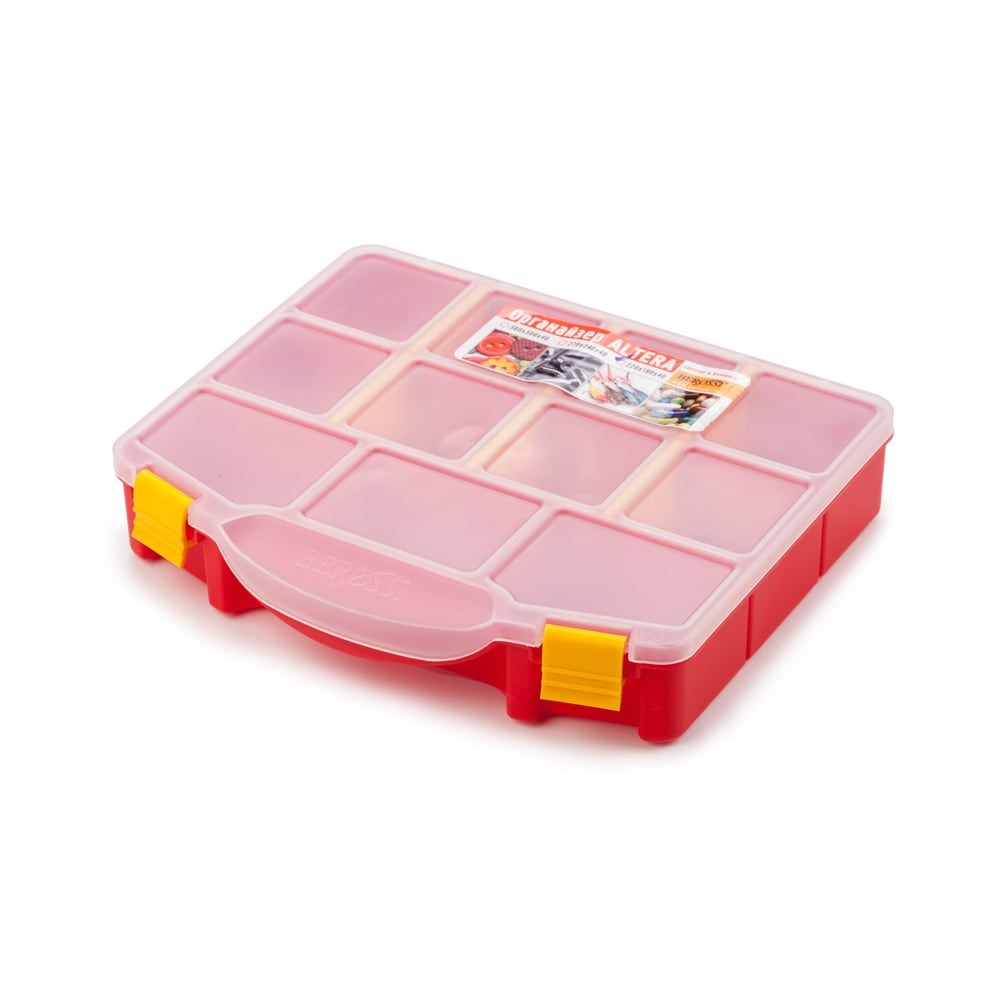 Органайзер Berossi Altera 220x190x40, мандарин АС 23240000 используется для хранения мелких вещей, инструментов и принадлежностей. При помощи перегородок, можно организовать внутреннее пространство по своему усмотрению. Органайзер можно использовать для хранения рыболовецких или рукодельных принадлежностей, предметов для рисования или катушек для швейных машин, а также болтов, гаек, шайб и многого другого. Удобная ручка является частью корпуса Качественный пластик отличается повышенной прочностью и стойкостью к внешним воздействиям Прозрачная гибкая крышка надежно крепится к основанию и прочно закрывается на две защелки На внутренней стороне крышки нанесены бороздки, которые в закрытом виде плотно прижимаются к перегородкам, что исключает перемешивание содержимого ячеек