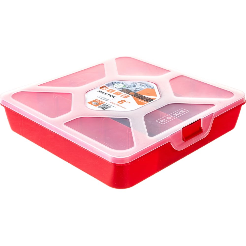Blocker Органайзер п/п 200х200х45 для мелочей, с крышкой цв. красный предназначен для переноски и хранения инструмента и мелочей. Данная модель имеет прозрачную крышку и компактный корпус.Органайзер для мелочей помогает содержать в порядке, переносить на место выполнения работ и быстро находить метизы и аксессуары. Идеален для использования дома, на даче, в гараже, мастерской, в автомобиле. Внутреннее деление на отсеки делает удобным размещение внутри органайзера деталей, которые необходимо отделить друг от друга. 16 съёмных перегородок позволяют изменять размер отсеков под личные нужды. Прозрачная крышка позволяет увидеть содержимое, не открывая органайзер. Имеется петля для подвеса. Подходит для хранения рыболовных и швейных принадлежностей, коллекционирования, занятия хобби.
