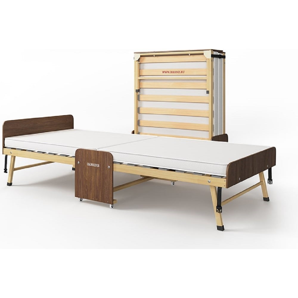 Раскладная кровать Dr. Bronz Основа сна орех 90200103 оснащена матрасом и ортопедическим основанием. Эластичное буковое основание длительное время сохраняет ортопедические свойства, поддерживая позвоночник, способствуя улучшению кровоснабжения и оказывая общий оздоравливающий эффект. Спальное место не принимает так называемый «эффект гамака». Позвоночник будет оставаться идеально ровным без малейшего напряжения, а тело будет находиться в правильном анатомическом положении. Матрас из экологически чистого холофайбера. По своим характеристикам он напоминает хлопок или пух высокого качества, однако в эксплуатации он гораздо лучше этих натуральных аналогов. Волокна-пружинки, из которых состоит нетканое полотно, обеспечивают его устойчивость к истиранию, невесомую легкость, воздушность и удивительную мягкость. Раскладная кровать имеет изголовье высотой 30 см и изножье 15 см.