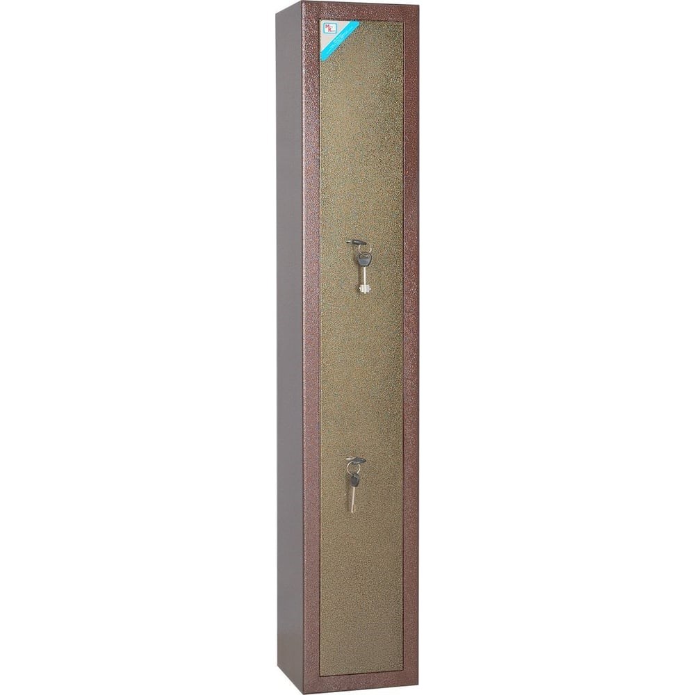 Оружейный сейф МЕТКОН ОШ-1 МТ_01_05_023_01_Md/Br сертифицирован по ГОСТ Р 55148-2012 (табл. 1). Класс устойчивости к взлому S1. Корпус сейфа толщиной 2 мм, дверь толщиной 3 мм. На задней стенке корпуса расположены отверстия для крепления. Сейф на 2 ружья оснащен отделением под патроны. Ложементы - пластик. Максимальная высота устанавливаемого оружия - 1200 мм. Два замка ООО «Бордер» г. Рязань или аналогичные замки другого производителя.