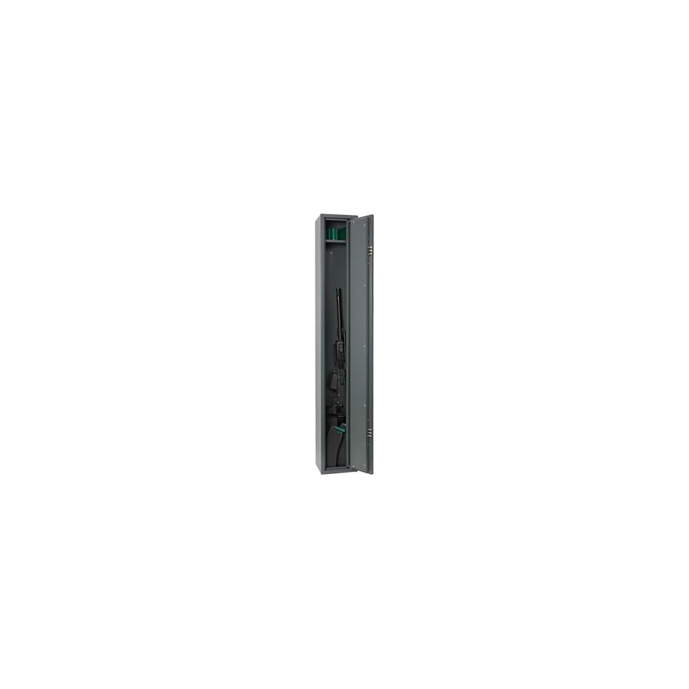 Оружейный шкаф Onix Эфес предназначен для размещения до двух ружей в вертикальном положении, хранения их и патронов. Корпус изготовлен из прочной стали. Конструкция монтируется к стене и полу при помощи анкерных креплений. Шкаф запирается благодаря двум сувальдным замкам. Съемная полка предназначена для размещения на ней патронов. Сейф соответствует требованиям МВД РФ.
