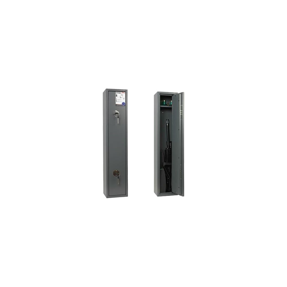 Оружейный шкаф Onix Сотник соответствует требованиям МВД РФ. Сейф изготовлен из прочной стали и служит для хранения до двух ружей в вертикальном положении. Шкаф запирается при помощи сувальдных замков. Внутри корпуса расположена полка для хранения патронов. Монтаж осуществляется к стене и полу при помощи анкерного крепления.