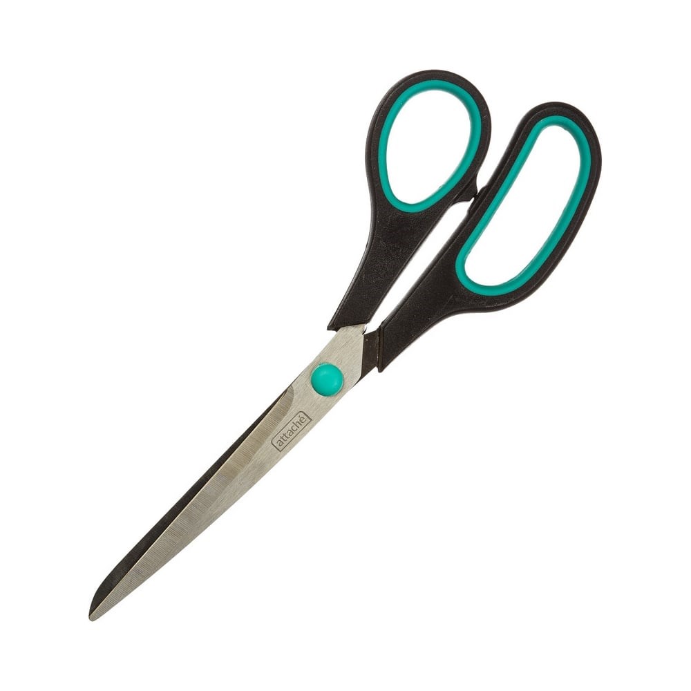 Ножницы Attache 215 мм с пластиковыми прорезиненными ручками зеленый/черный, остроконечные 262866 предназначены для разрезания бумаги. Трехсторонняя заточка лезвий увеличивает их остроту. Благодаря компактным размерам не занимают много места при хранении. Кольца имеют анатомическую форму, что обеспечивает естественное положение ножниц в руке.