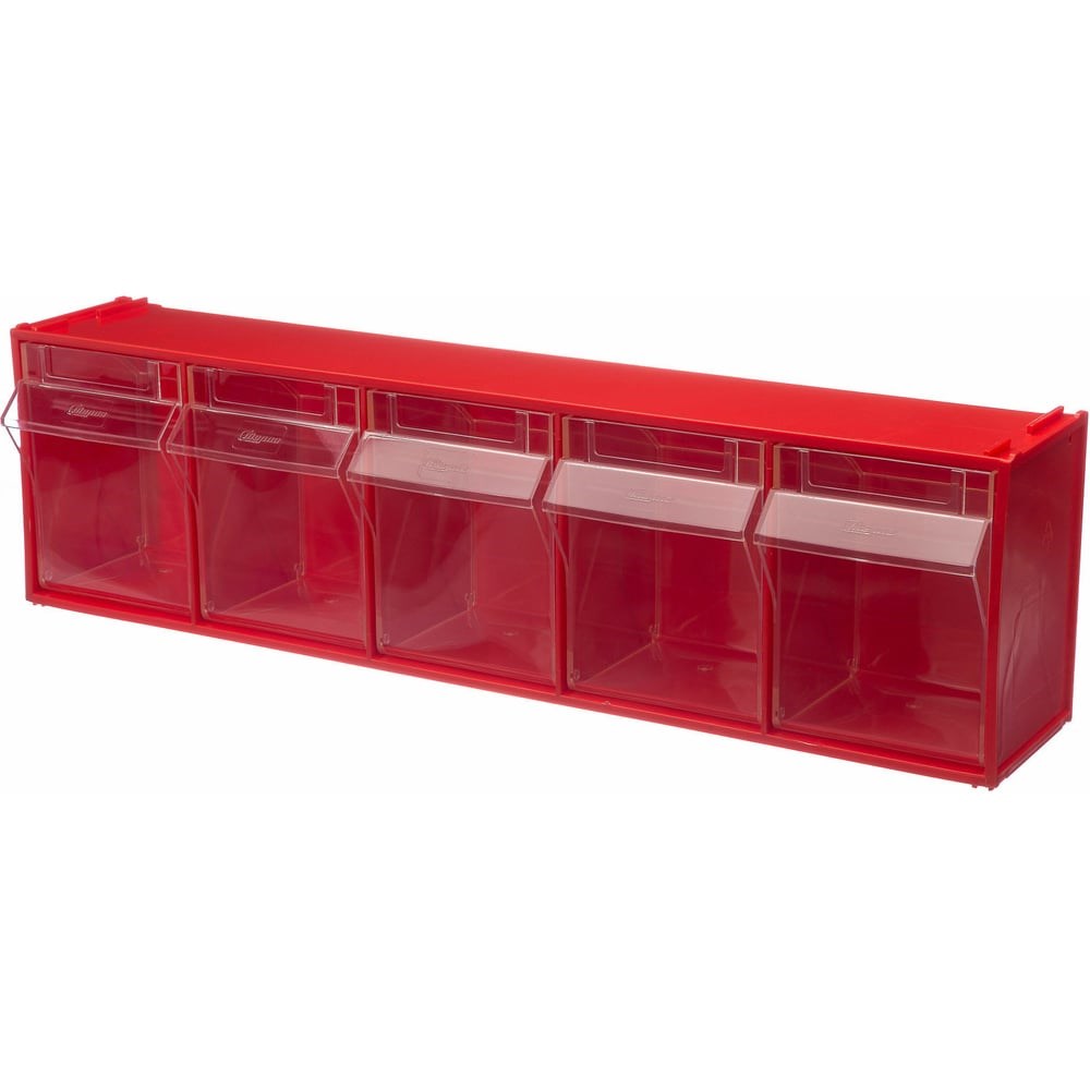 Короб Стелла-техник откидной, 600х140х168мм, 5 ячеек, красный, прозрачный, F-600-5 предназначен для удобства хранения как мелких, так и достаточно крупных предметов в складских помещениях. Откидная система обеспечивает быстрый доступ к нужным изделиям. При необходимости прозрачный короб можно без труда извлечь из кассеты за считанные секунды для высыпания или наполнения. Специальный пластик, из которого выполнен короб, выдерживает значительные нагрузки и обладает оптимальной эластичностью.