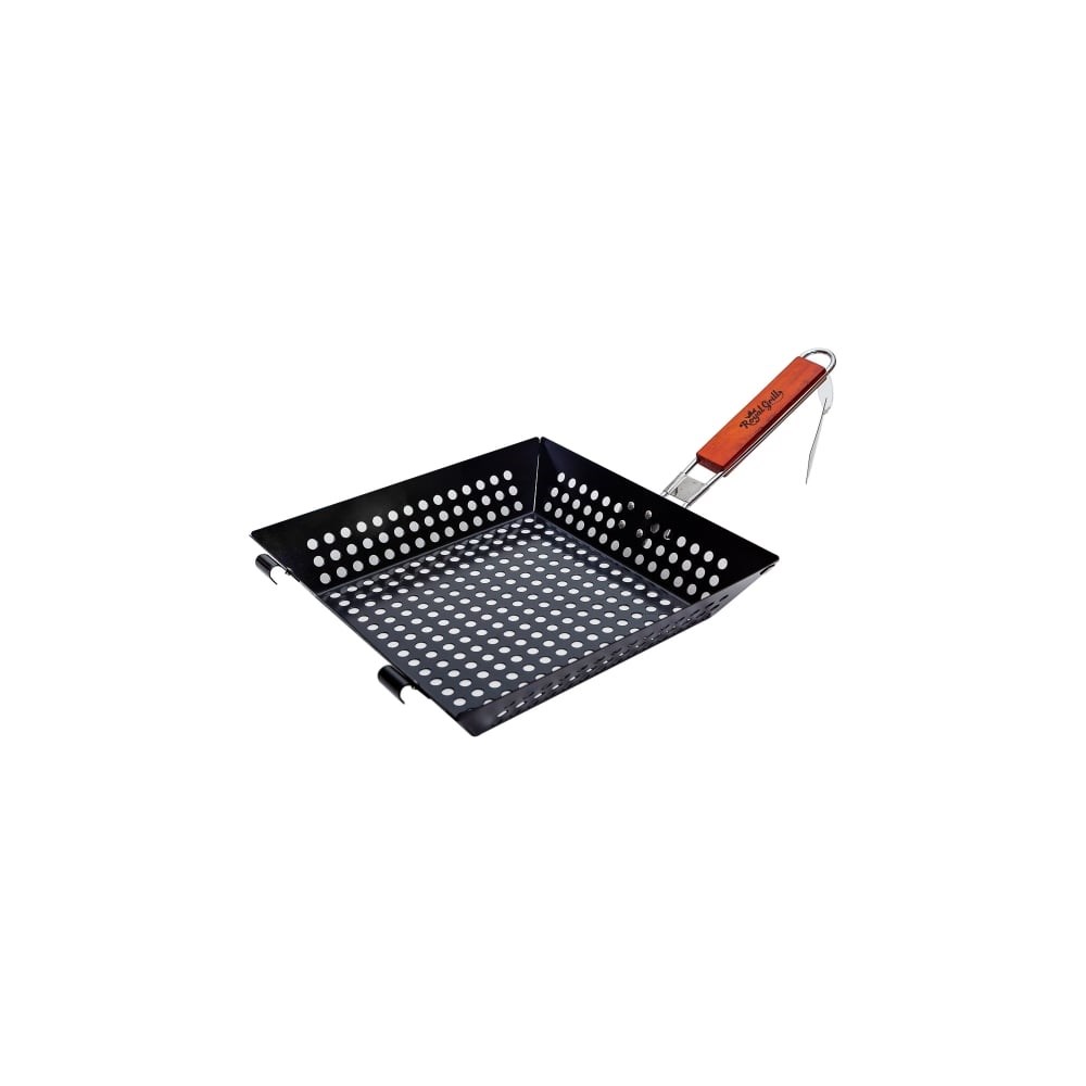 Открытая решетка-гриль ROYALGRILL 80-030 64425 незаменимый помощник на пикниках и в походах. Имеет антипригарное покрытие, поэтому ваши продукты не будут прилипать к решетке. Для удобства имеет складывающуюся ручку с деревянным держателем.