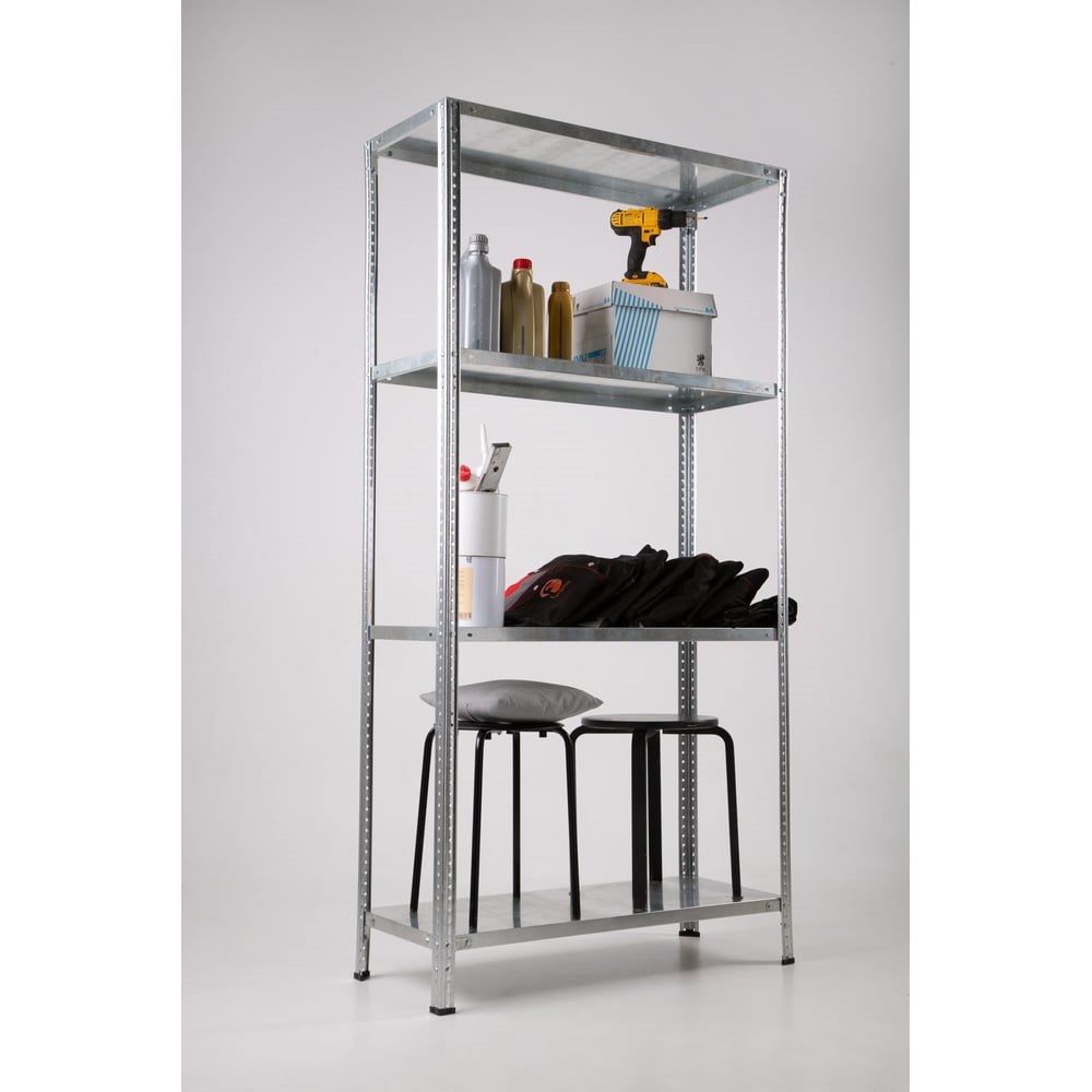 Оцинкованный стеллаж ООО ФУРАМА СТФЛ 2000x1000x400 мм, 4 полки СТФЛц201040-4 отлично подойдет как для дома, так и для предприятия. Оцинкованные стеллажи используются в местах с высоким уровнем влажности или низкой температурой, а также на химико-перерабатывающих предприятиях. Данные конструкции замечательно подходят для хранения лакокрасочных материалов, а также средств бытовой химии и дезинфекции. Максимальная допустимая нагрузка на стеллаж 500 кг, на полку - 100 кг. Полка выполнена из оцинкованной стали толщиной 0,7 мм. Подпятники не регулируемые. Для формирования высоты 2000 мм стойки 1000 мм фиксируются между собой соединителем. Данный стеллаж можно укомплектовать дополнительными полками “Полка СТФ 1000х400 мм, оцинкованный” (СТФ-П10.4ц)