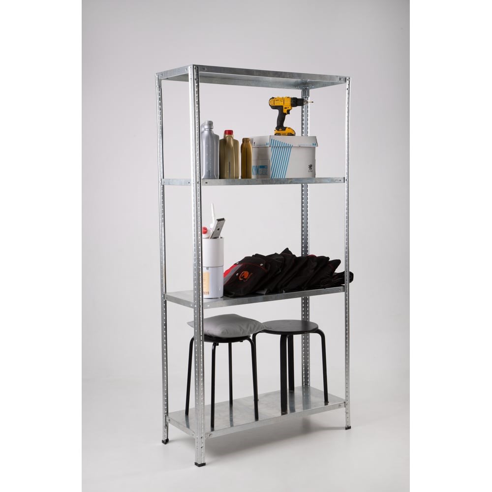 Оцинкованный стеллаж ООО ФУРАМА СТФЛ 1800x700x400 мм, 4 полки СТФЛц180740-4 отлично подойдет как для дома, так и для предприятия. Оцинкованные стеллажи используются в местах с высоким уровнем влажности или низкой температурой, а также на химико-перерабатывающих предприятиях. Данные конструкции замечательно подходят для хранения лакокрасочных материалов, а также средств бытовой химии и дезинфекции. Максимальная допустимая нагрузка на стеллаж 500 кг, на полку - 100 кг. Полка выполнена из оцинкованной стали толщиной 0,7 мм. Подпятники не регулируемые. Для формирования высоты 1800 мм стойки 1000 мм и 800 мм фиксируются между собой соединителем.Данный стеллаж можно укомплектовать дополнительными полками “Полка СТФ 700х400 мм, оцинкованный” (СТФ-П7.4ц)