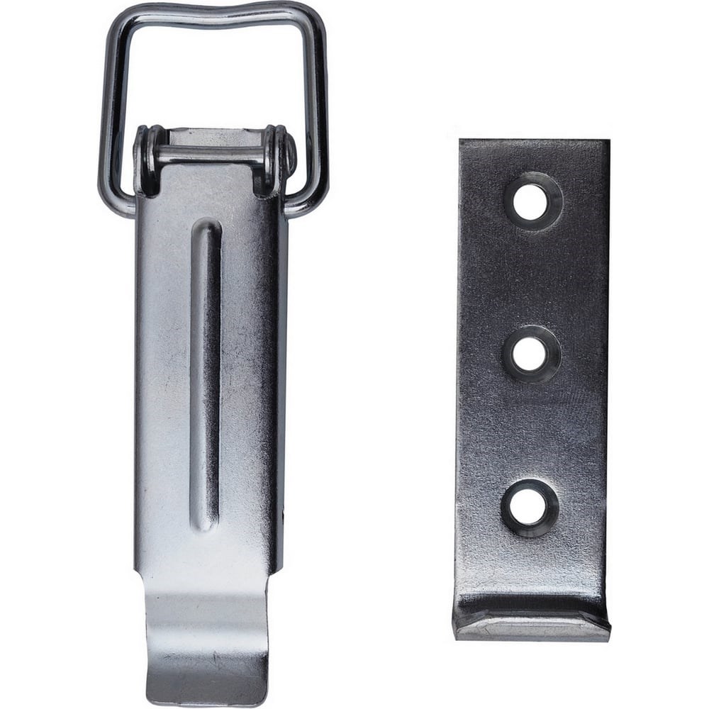 Замок для ящика VORMANN с прямой ответной частью 110х37мм, оцинкованный 01202105/8025 изготавливается из высококачественной оцинкованной стали. Предназначен для быстрого запирания ящиков из дерева и комодов, коробок, мебели, сундуков и чемоданов. Замок закрывает крышки деревянных емкостей с помощью подвижного рычага, который фиксирует специальное кольцо.