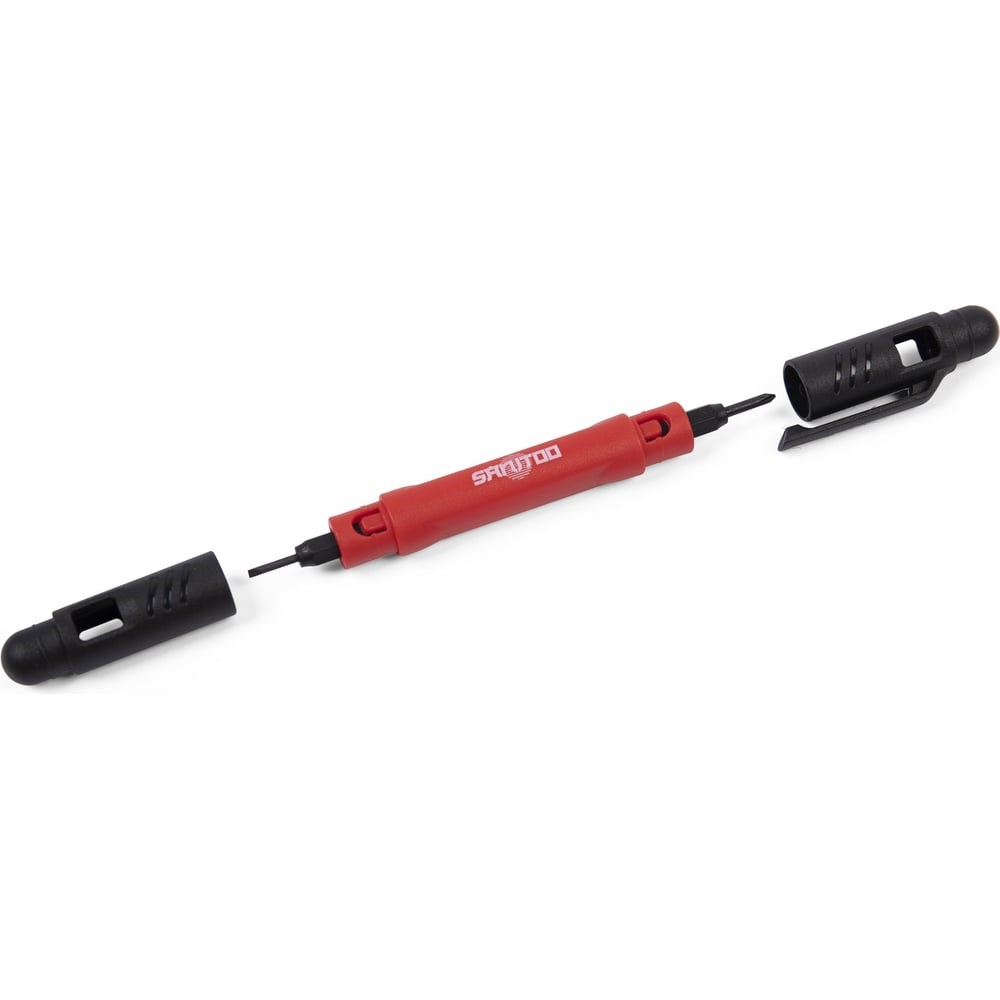 Отвертка для точных работ предназначена для выполнения точных работ с различными резьбовыми соединениями. Представляет собой пластиковую рукоятку в комплекте с двумя двухсторонними битами-вставками. Компактное изделие длиной в 130 мм удобно носить с собой. Корпус из ABS -пластика выполнен в форм факторе "шариковая ручка" с удобным колпачком - зажимом для крепления на одежду. Биты - вставки изготовлены из высококачественной хромованадиевой стали. Дополнительная термическая обработка рабочей поверхности гарантирует твердость 51-54 HRС по Роквеллу.