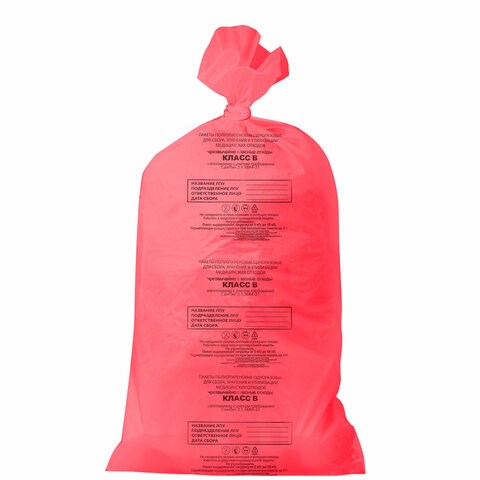 Пакеты для медицинских отходов КОМПЛЕКТ 100 шт., класс В (красные) 30 л, 50х60 см,16 мкм, ПТП "Киль"