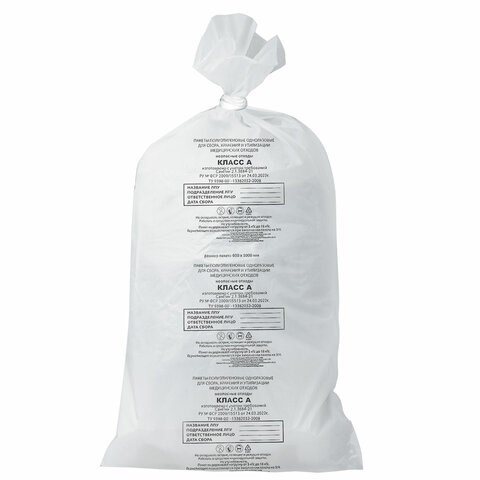 Пакеты для медицинских отходов КОМПЛЕКТ 50 шт., класс А (белые) 100 л, 60х100 см, 16 мкм, ПТП "Киль"