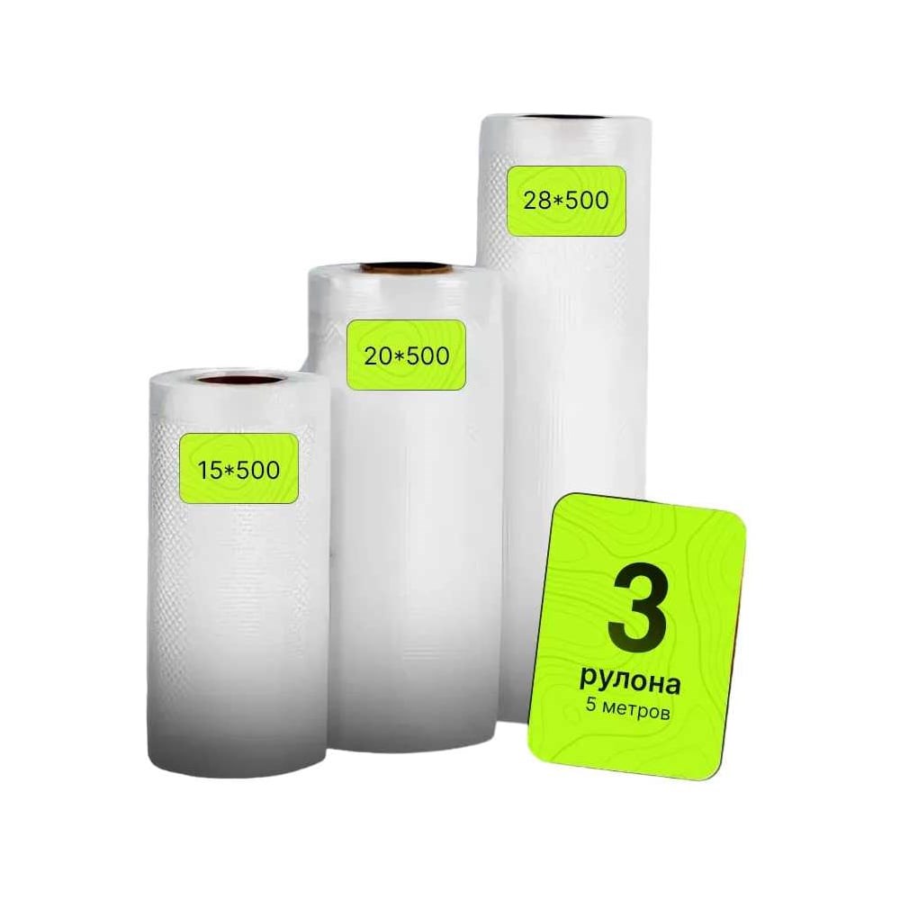 Пакеты для вакууматора набор 3 штук незаменимый аксессуар на кухне. Имеют идеальный размер 15, 20, 28*500. Вакуумный рукав прозрачный двухсторонний: одна из сторон рифленая, толщина 85 микрон, рисунок мелкий квадрат - позволяет проводить вакуумирование в максимальной степени, а другая сторона гладкая 95 микрон. Рулоны удобны для разреза на нужные размеры. Проверяйте совместимость ширины рулона и максимально возможную длину запаячной ленты Вашего вакумного упаковщика. Пакетики изготовлены из пищевого полиэтилен-полиамида. Пакеты для вакууматора идеально подходят для заморозки и хранения в морозильной камере и холодильнике, разогрева в микроволновой печи. Пакеты могут использоваться дома для упаковки продуктов питания. Например, овощи и фрукты, крупы, сухофрукты, ягоды, сладости, рыба, колбасные изделия и полуфабрикаты. Еще один из способов использования - маринование продуктов, например мясо за счет вакуума, замаринуется намного быстрее. А так же пакеты подойдут для хранения и безопасной транспортировки особо ценных вещей - например деньги, паспорт и другие, за счет полной герметизации и влагостойкости. Также можно использовать наши пакеты для приготовления пищи по французской технологии - Су-вид (sous-vide). Пакеты выдерживают температурный режим от -40 до +90C (не подходит для запекания).