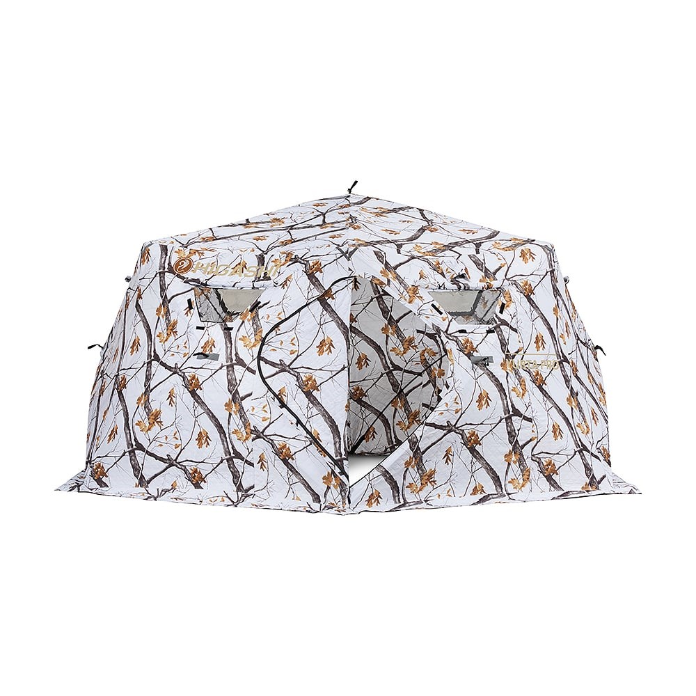 Палатка HIGASHI Winter Camo Yurta Hot 04940 – утепленная трапециевидная зимняя модель шестигранной формы. Ткань типа сэндвич не имеет мостиков холода, поэтому подойдёт для более холодных регионов, для длительного нахождения в ней с печкой.