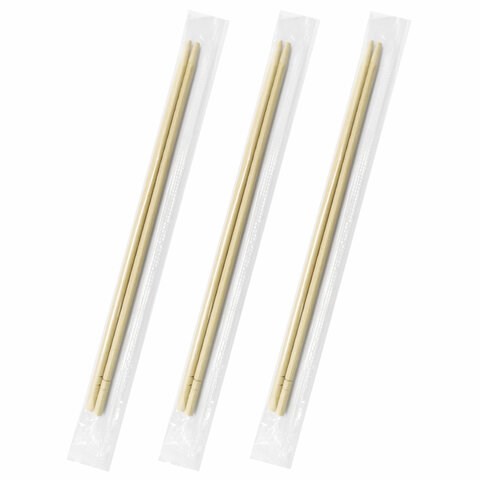 Палочки для суши бамбуковые 21 см, круглые, КОМПЛЕКТ 100 пар в индивидуальной прозрачной упаковке, БЮДЖЕТ, 132266