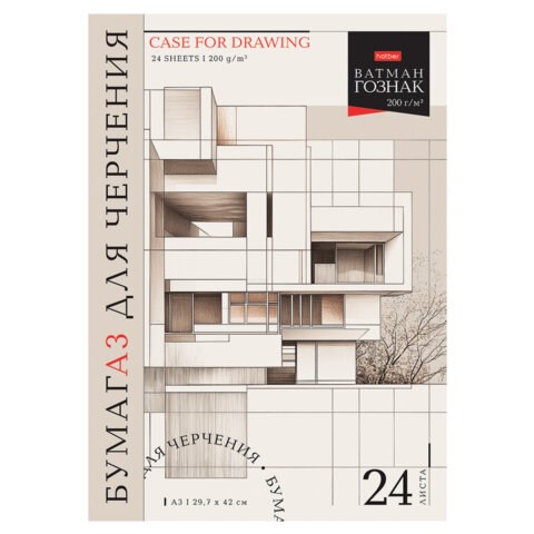 Папка для черчения БОЛЬШАЯ А3 297х420 мм, 24 л. 200 г/м2, без рамки, ватман ГОЗНАК, HATBER, 090036, 24Бч3A_33348