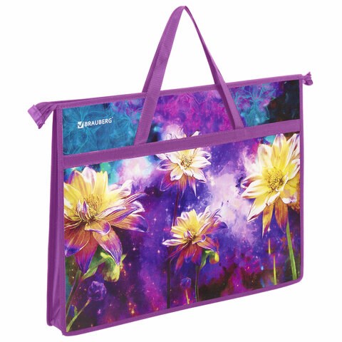 Папка для рисунков и чертежей с ручками BRAUBERG А3, пластик, молния сверху, "Flowers", 270146