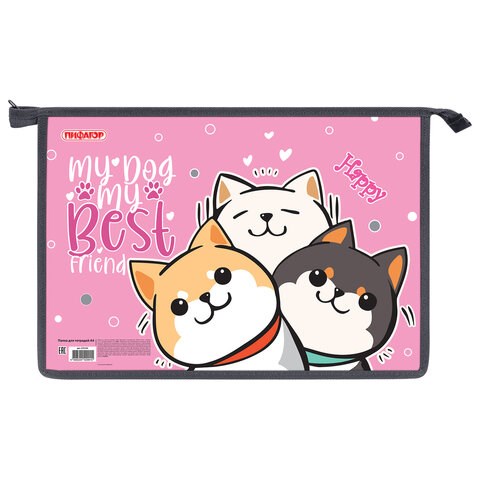 Папка для тетрадей ПИФАГОР А4, 1 отделение, картон/пластик, на молнии, "Best team", 272124