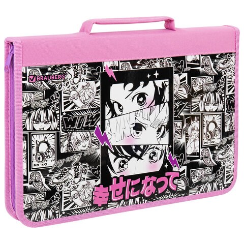Папка на молнии BRAUBERG А4 с ручкой, с органайзером, 1 отделение, "Anime movie", 272216