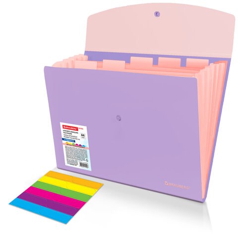 Папка-органайзер конверт на кнопке 6 отделений, BRAUBERG "Extra", A4, лиловая с персиковым, 274101