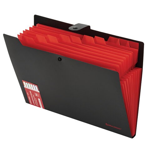 Папка-органайзер на кнопке 12 отделений, BRAUBERG "Extra", А4, черная с красным, 271934