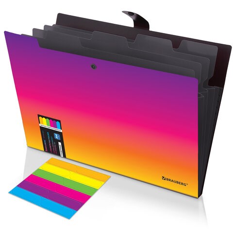 Папка-органайзер на кнопке 5 отделений, BRAUBERG GRADE, A4, желто-розовый градиент, 274093